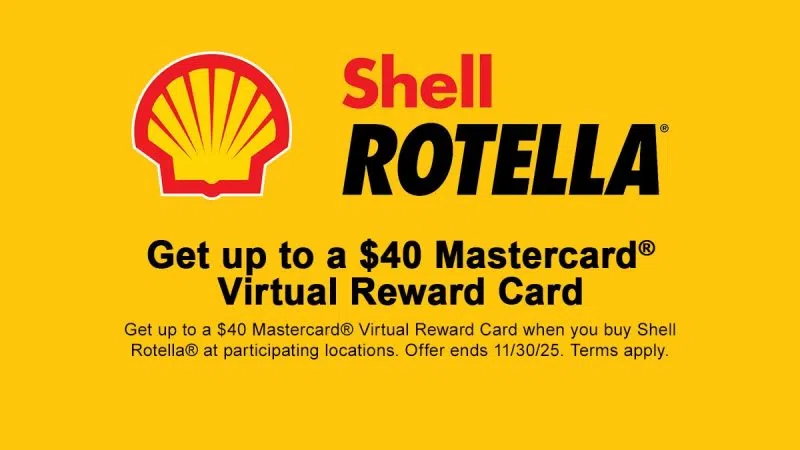 Get up to a $40 Mastercard® Virtual Reward Card when you buy Shell Rotella® at participating locations!